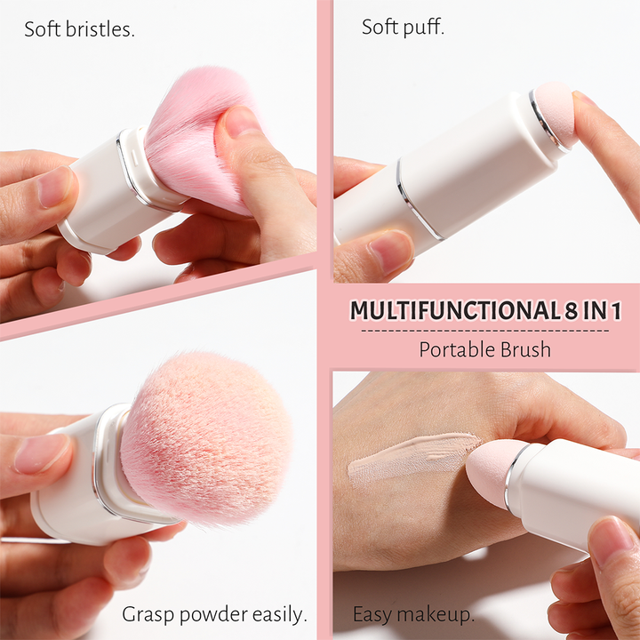 - Complete Set: Includes 8 soft makeup brushes, 1 blending sponge, 1 retractable kabuki brush