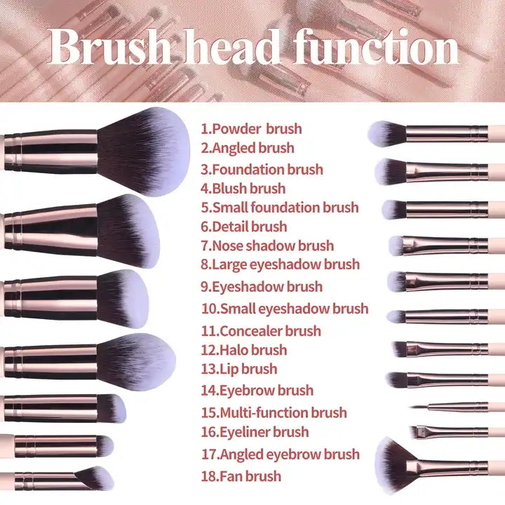 - Brush Types: Includes face brushes (foundation, powder, contour) and precision eye brushes