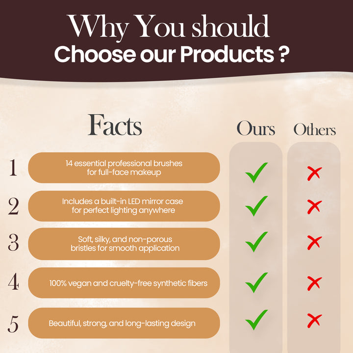 - 🌟Convenient LED Travel Case: Each set comes with a compact travel case featuring an integrated LED mirror. This makes it convenient for storage, traveling, and on-the-go touch-ups.