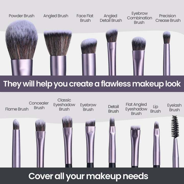 - Comprehensive Makeup Brush Set: This Travel Makeup Brush Set from Beautimax includes 14 mini makeup brushes featuring a flat foundation brush and a large powder brush. The thick and durable bristles ensure a consistent and flawless makeup application.