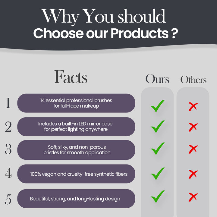 - 🌟Convenient LED Travel Case: Each set comes with a compact travel case featuring an integrated LED mirror. This makes it convenient for storage, traveling, and on-the-go touch-ups.