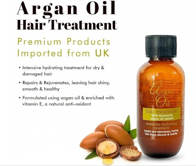 - Repairs and Restores: Our intensive hydrating treatment deeply penetrates the hair shaft, repairing and revitalizing even the most damaged locks. · Rejuvenates and Nourishes: Experience the transformative effects as this unique formula replenishes essential nutrients, leaving your hair feeling healthier, stronger, and more vibrant. · Unleashes Brilliant Shine: Say goodbye to dull, lackluster hair! Our argan oil treatment adds a lustrous shine that will turn heads wherever you go. · Silky Smoothness: Transform your hair into a velvety-smooth masterpiece. This treatment tames frizz, reduces flyaways, and leaves your hair irresistibly soft to the touch. ·