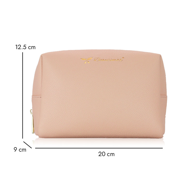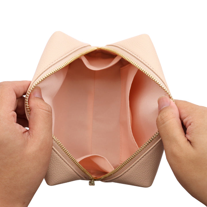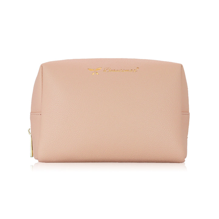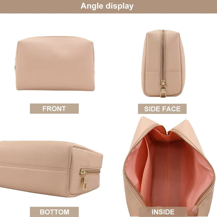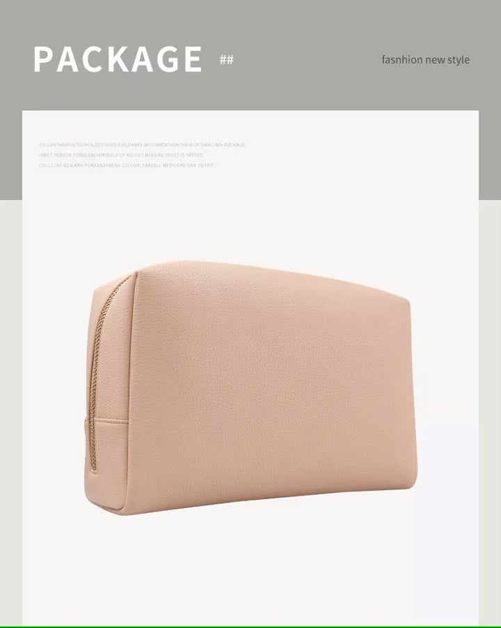 Keep your beauty essentials organized in style with this chic nude makeup bag, crafted from soft, durable PU leather and finished with a sleek gold zipper. Compact yet spacious, this minimalist cosmetic pouch is perfect for storing makeup, toiletries, skincare, or small accessories—whether you're on the go or at home. The water-resistant material and structured design help protect your items, while the elegant nude tone adds a sophisticated touch to any vanity or travel bag. A must-have organizer for anyone who values both function and fashion.