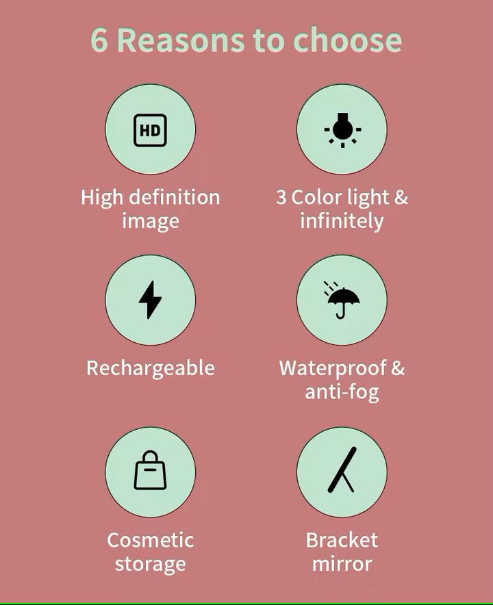 - Smart Touch Control: Adjustable brightness for makeup, skincare, or grooming