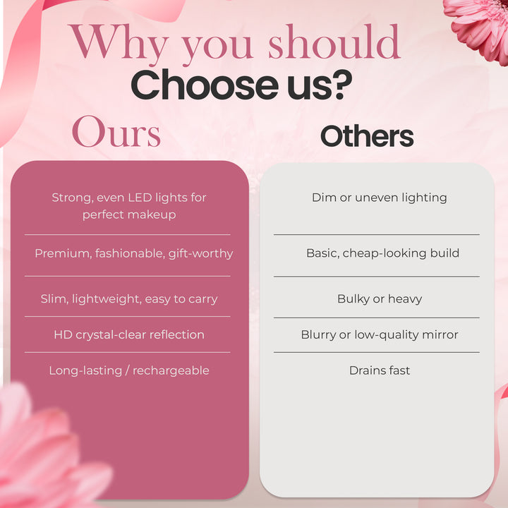 - 💡 Built-in LED Lights — Perfect lighting for flawless makeup